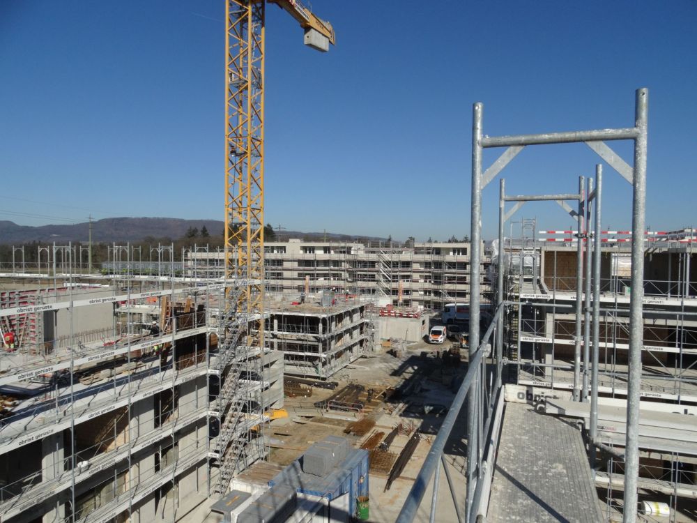 Aussicht ab den Attikageschoss eines Blocks der Baustelle Staufberg